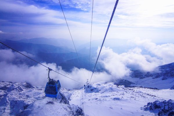 直抵海拔4506米。索道全長2914米,垂直高差1150米。是中國海拔最高的旅遊客運索道。索道採用6人座豪華脫抱式全封閉吊箱,安全舒適。到上部站的白雪皚皚,中間運行時間為半小時。